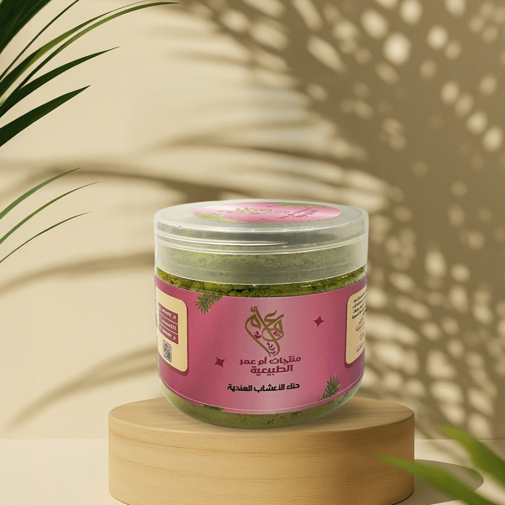 حناء الأعشاب الهندية من منتجات أم عمر الطبيعية مسحوق طبيعي مستخلص من أوراق نبات الحناء يستخدم لتلوين الشعر وتغذيته يمنح الشعر لونًا غنيًا ويقوي بصيلاته كما يغطّي الشعر الأبيض ويعزز لمعانه.